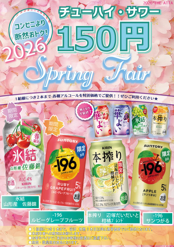 春の期間限定チューハイ・サワー150円フェアがいよいよスタート☆彡