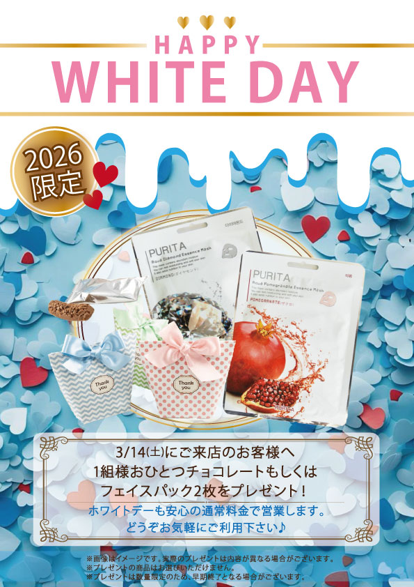 ホワイトデーも安心の通常料金にて営業致します♪
